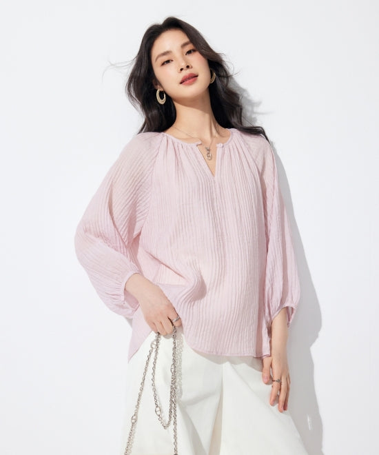 ふんわりシルエットが可愛く体型カバー。プリーツブラウス