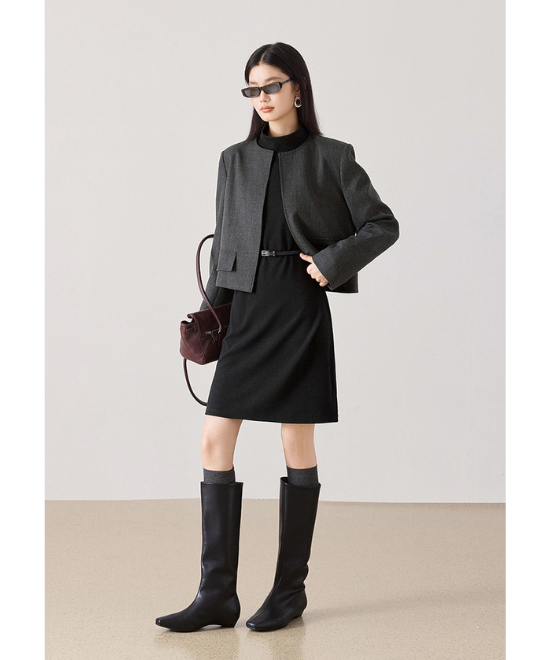 レイヤードスタイルも楽しめる、冬素材のワンピース。