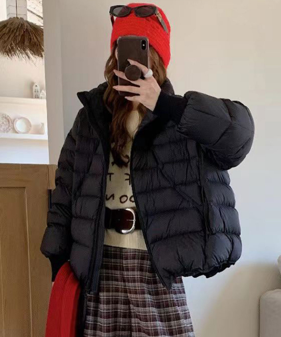 カラーコーディネートも、いろいろなスタイルも、幅広く対応してくれるブラックのダウンコートはヘビロテ間違いなしですね。