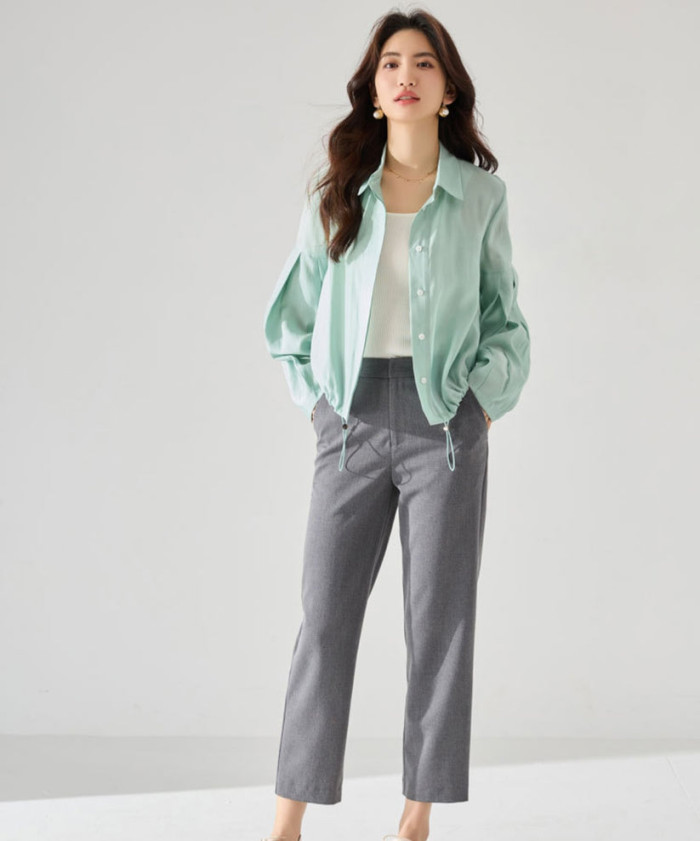 スリムシルエットなので、ゆとりは適度に入りつつもしっかり足を細く見せるようにしてくれる、スタイルアップも叶っちゃうテーパードパンツ。グレーの定番色を選ぶことによって、きちんと感をしっかり残しビジネスシーンにも使えて、カジュアルな装いにもきれいめな印象を与えてくれます。