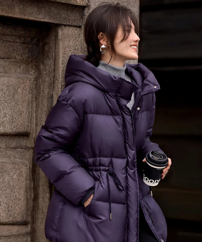 顔まわりに近いダウンこそ、カラー選びが印象を左右するポイント。パープルのやさしい色合いが、冬らしいムードを引き立てながら上品な印象に。軽やかなカラーのダウンは、カジュアル派にもきれいめ派にもおすすめの冬の名品です。