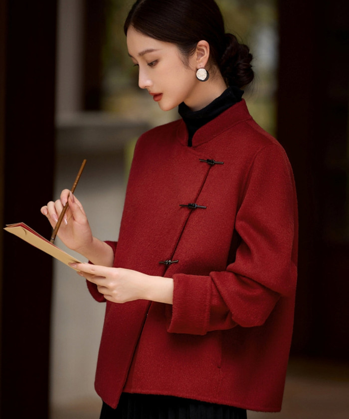 鮮やかなレッドのコートは、冬のおしゃれに軽やかさと清潔感を添える万能カラー。暗色のボトムと合わせれば、ワントーンでも洗練された女性らしさが光ります。ショート丈でバランスが取りやすく、スタイリングもしやすい一着です。