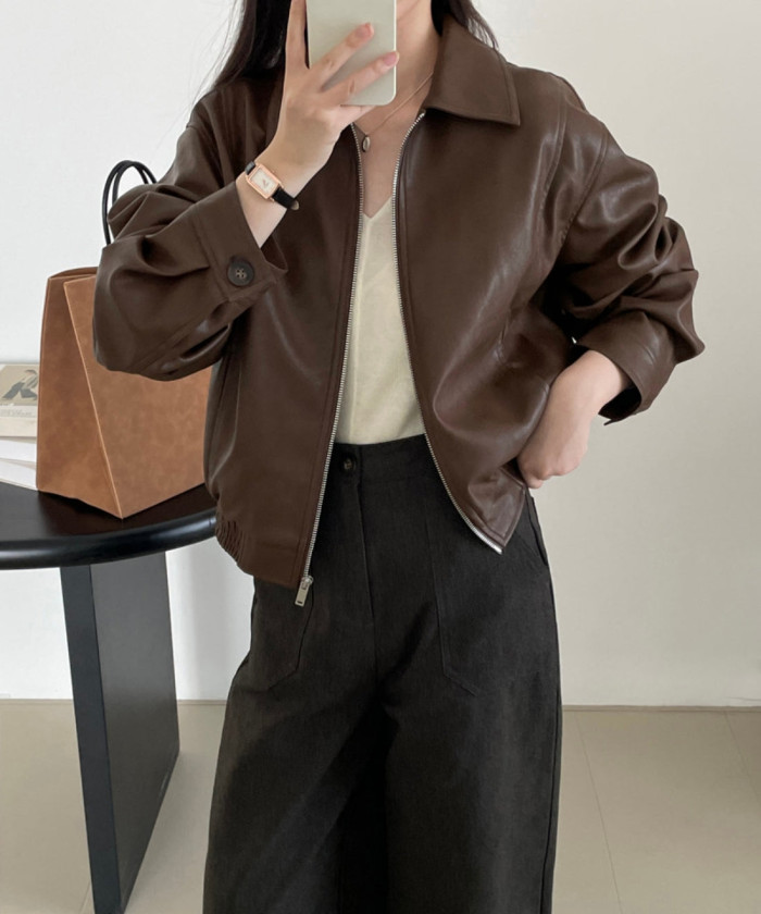 辛口な印象のレザージャケットも、ブラウンなら柔らかくこなれた印象に。ショート丈で脚長バランスが作れるうえ、プリーツスカートやワンピースに合わせてもグッとおしゃれ見え。トレンドと大人っぽさが両立した1枚です。