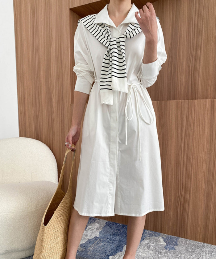 外れの無いスタンダードでシンプルなデザインが安心できるシャツワンピース。きちんと感のあるデザインはもちろん、ホワイトの色味もお仕事のシーンにはふさわしいですよね。そしてなんと、羽織りものにも困らないので、アウターや室内で羽織るカーディガンなどにも、考えなくとも合わせられるのです。