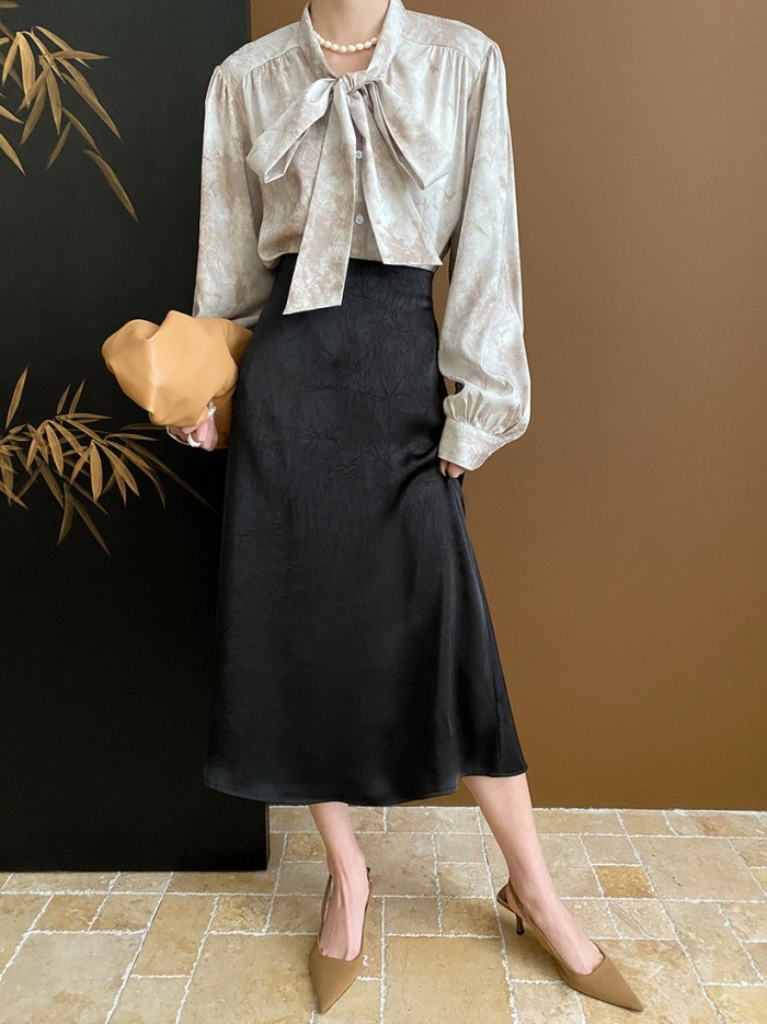 大きめのリボンタイがドレッシーな雰囲気に見せてくれる、おしゃれだけどビジネス感を損なわないリボンタイブラウス。ブラックのボトムスに合わせるとシャープな印象になり、ホワイトのボトムスだとあか抜けた印象になります。リボンタイは結び方によって雰囲気を左右できるので、アレンジできるのも嬉しいです。