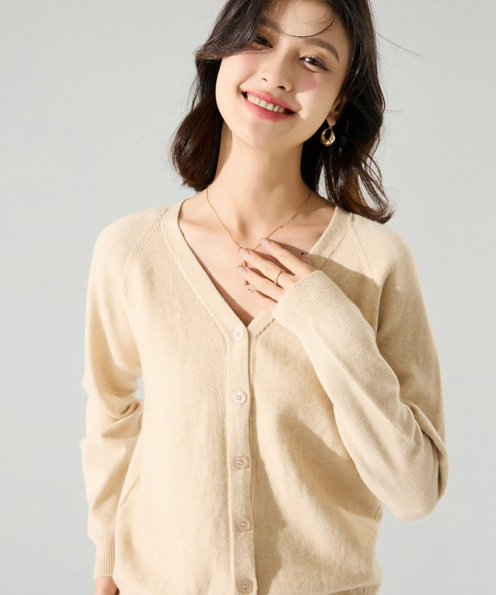 ライトベージュ×vネックカーディガン