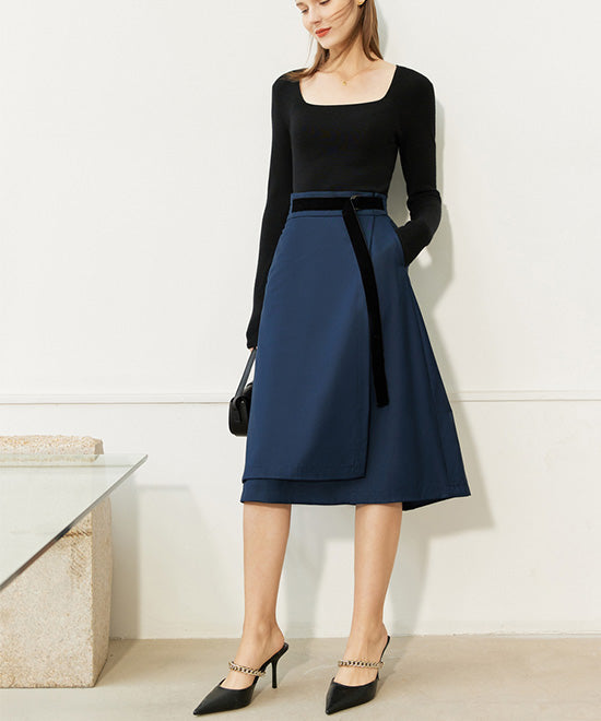 光沢感を抑えたマッドな生地感が、よりエレガントで洗練された印象を演出してくれるスカート。膝の隠れるミディ丈なので、足の露出は控えめの方が嬉しい大人女子さんも、安心して着用することができます。巻きスカート風の個性派デザインが一気にその存在感を高めてくれる、主役級のスカートです。