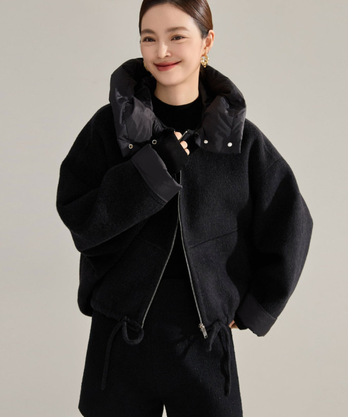 フード付きでスポーティな印象ながら、ショート丈で全体をコンパクトに見せてくれるブルゾン。裾のドロストを絞れば、シルエットにメリハリも出せます。デニムやスカートはもちろん、ワンピースとも相性抜群です。