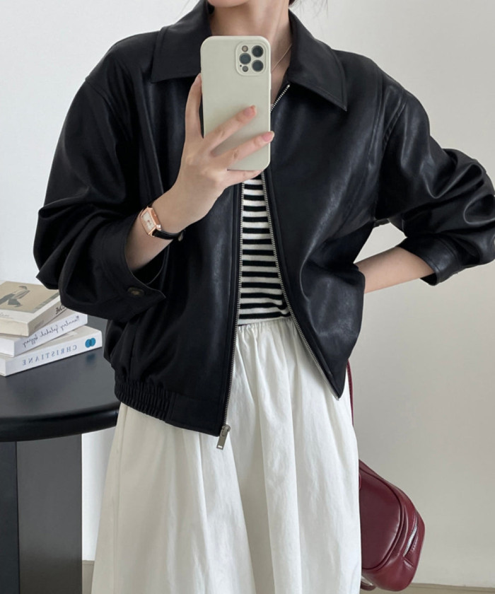 大人なエッジ感が手に入るレザー調アウター