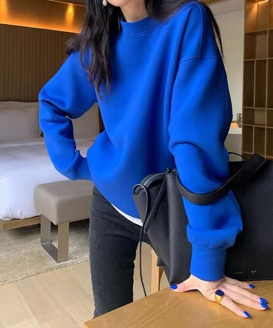 カラートップスでもくすみすぎない、計算された鮮やかなカラーが魅力。ゆったりとしたシルエットで動きやすく、シンプルなスリムパンツに合わせるだけでおしゃれ度が一気にアップ。冬でも明るさを取り入れたい人におすすめです。