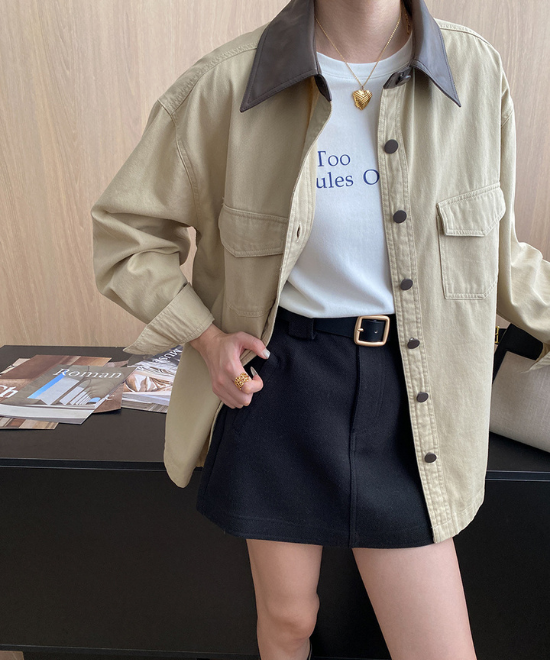 大きめシルエットとレザーカラーがトレンド感あるこちらのジャケット。お尻まですっぽり覆う丈感で、ミニスカートとの相性も抜群。落ち着いた雰囲気のカーキブラウン×ベージュで、大人のカジュアルスタイルにぴったり。