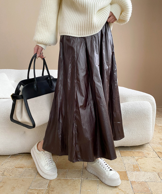 シワ加工とプリーツ感が洒落感とフェミニンさを両立してくれるこちらのスカート。いつものトップスに合わせるだけで、違った気分を楽しめてマンネリ脱却に。ホワイト系のアイテムと合わせると優しさあるまろやかなコーデに。