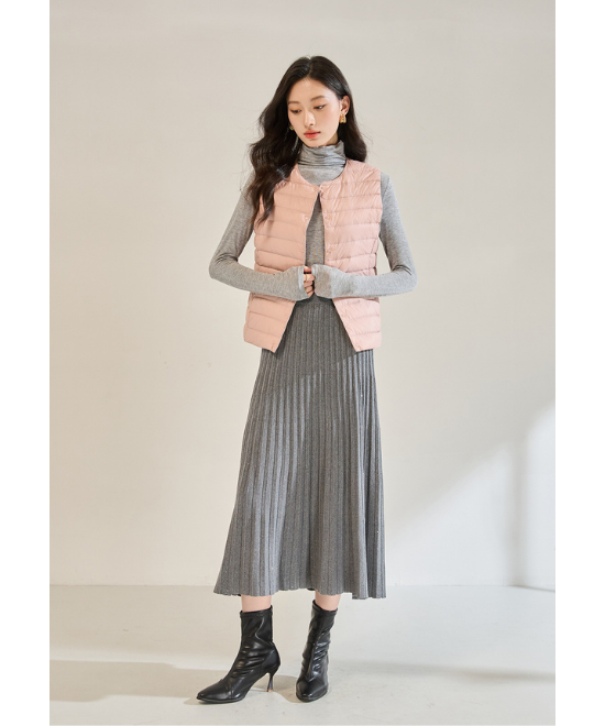 気品良く揺れるプリーツのディテールデザインが美しく、フレッシュなイメージも演出してくれるプリーツスカート。大人っぽいグレーの色味を選んで、アイテムが持つ甘さを抑えます。さらにそれを主体にシンプルなアイテムでスタイリングし、甘いピンクのカラーを刺し色にすると大人っぽく着られます。