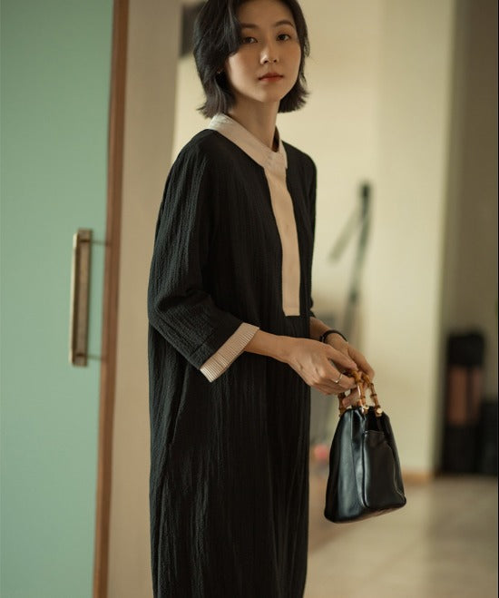 スマートに見える上品ライン「コントラストカラーシャツドレス」