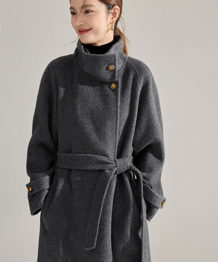 首元をスッと美しく見せてくれるスタンドカラーは、凛とした印象を纏える大人の味方。シンプルでありながら、立体的なシルエットがとてもエレガントで、どんなスタイルにも合わせやすいのが特徴です。上質さを求める大人世代が一枚持っておきたい“長く着られる良いコート”という印象。