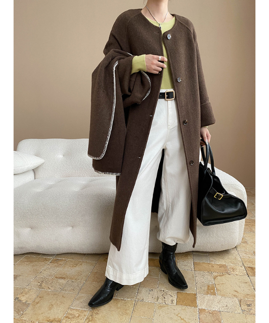 同色のストールがセットになったロングコート。忙しい朝も迷わずさっとアウターとストールを合わせるだけで統一感のあるスタイルに。ウール混でしっかり暖かいのも嬉しいポイント。