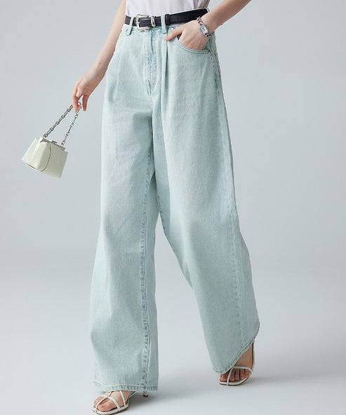 - 多彩なコーデが可能!『ハイウエストワイドレッグウォッシュドジーンズ』