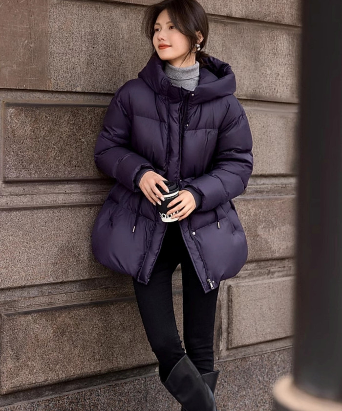 トレンドカラーである大人っぽいパープルカラーが、コーディネートのアクセント…いや、主役になってくれるダウンコート。シンプルでスタンダードなデザインなので、カジュアルスタイルを極めたい方におすすめです。クローゼットに定番色しか入っていない方の救世主にもなってくれますよ。