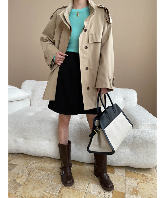 ルーズなシルエットのトレンチコートは、シンプルながらも今っぽいこなれ感が魅力。インナーにアクセントカラーを仕込めば、全体のトーンは落ち着かせつつ、さりげなく遊び心のあるコーデに。飽きのこないデザインで、長く愛用できる大人の定番アウターです。