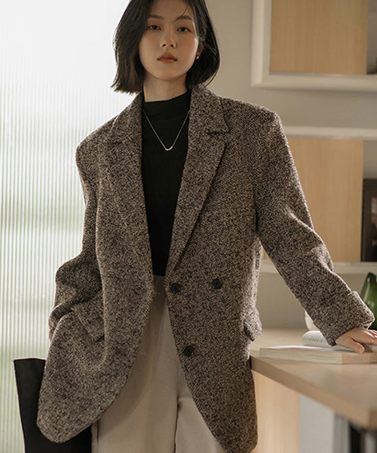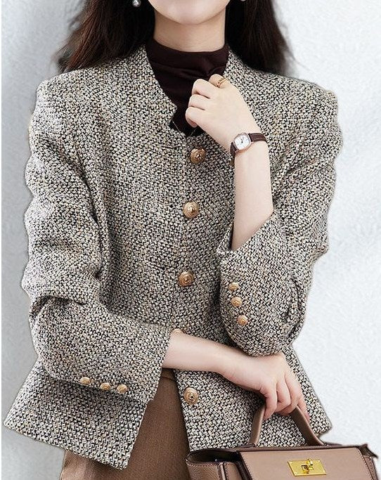 クラシカルなツイードを、スタンドカラーで今っぽく仕上げた一枚。顔まわりをシャープに見せつつ、全体に洗練された印象をプラスしてくれます。シンプルなニットやワンピースに羽織るだけで、品よく凛とした佇まいに。きちんと感が欲しい日の“頼れる一着”です。