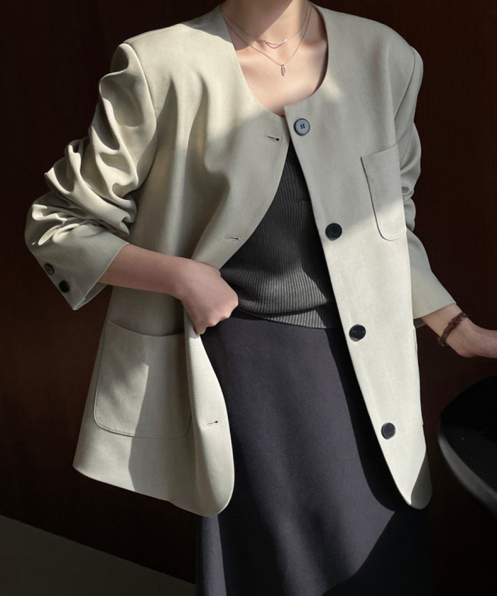 ミニマルなのに存在感。直線的シルエットの洗練ノーカラー