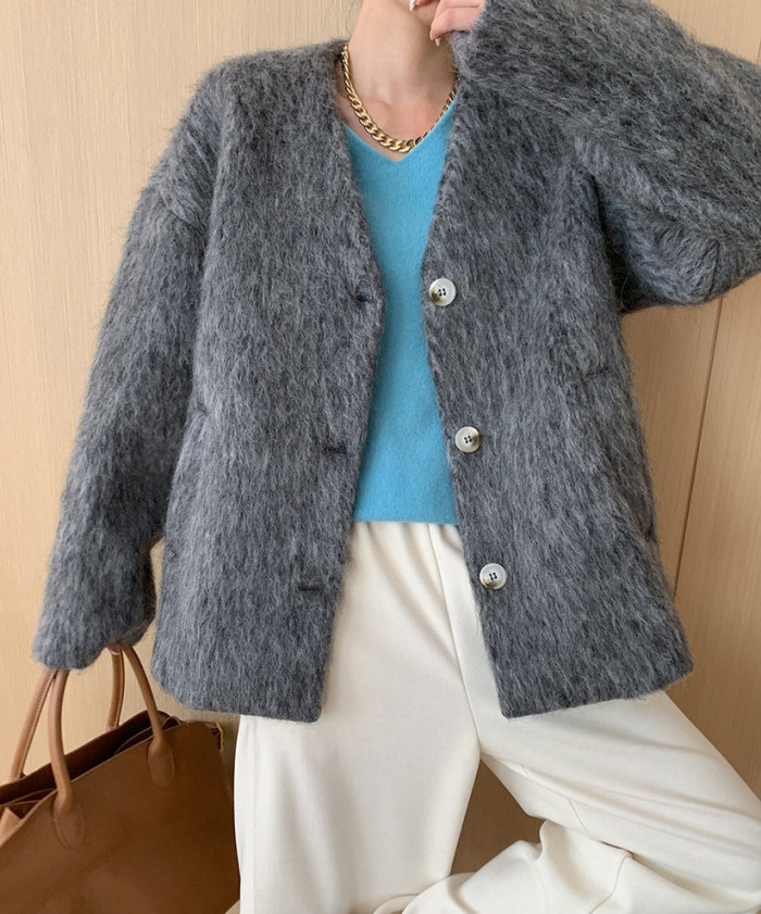 毛足の長いフェイク毛皮素材がおしゃれさと、高級感を出してくれるフェイクファーコート。毛足が長い分、重く見えてしまいがちなので、それをVネックにしてうまく抜け感を出しているのですっきり着用できます。カジュアルなコーディネートも、セレブリティーな印象に格上げしてくれるアイテムです。