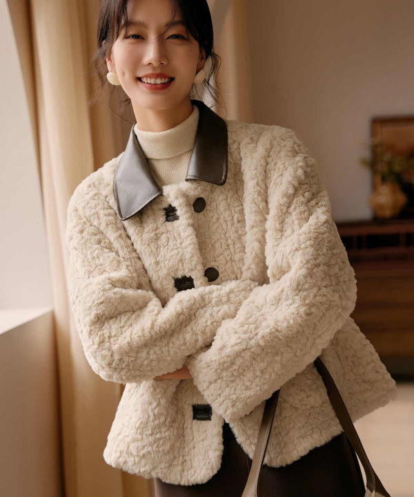 コンパクトなショート丈できれいめに着こなせるボアジャケット。襟元はレザー素材でメリハリをオン。パンツスタイルもスカートスタイルもバランスよく着こなせる丈感でデイリーに使える一着。インナーにタートルネックを合わせると大人っぽくきれいめな印象に。