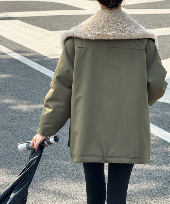 首回りが華やかになるビッグラペルにボアをあしらったジャケット。羽織るだけでおしゃれでバックスタイルも素敵な主役級アウター。カジュアルなイメージのカーキジャケットもたっぷりのボアで華やかな印象に。カジュアルもきれいめなスタイリングにも合わせやすく寒くなるこれからの時期、活躍すること間違いなし。