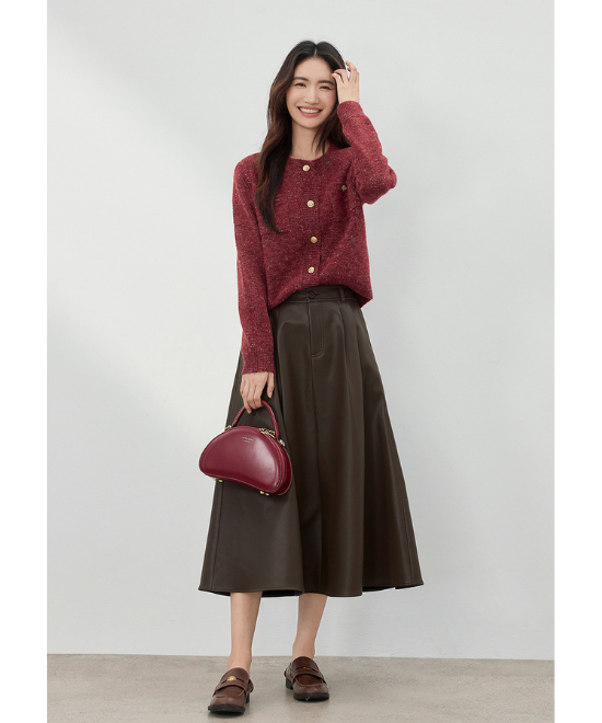 見た目もあたたかいワインレッドのカラーは、冬らしい季節感をたっぷり演出。ゴールドボタンで上品さもプラスされ、着こなしを変えればオンにもオフにも活躍する頼れる一枚。