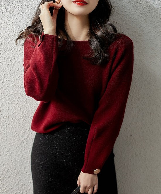 冬の装いにぱっと華やかさを添えてくれるレッドニットは、暗くなりがちな季節のコーデに明るさをプラスしてくれる頼れるアイテム。袖口にあしらわれたボタンが上品なアクセントになり、シンプルながらも女性らしいディテールが楽しめます。合わせるボトムスはブラックで引き締めれば、レッドの鮮やかさがより一層際立ち、大人らしいバランスに。