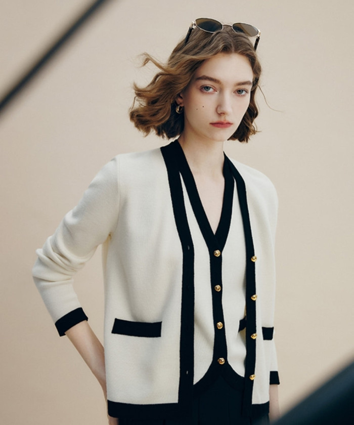 控えめなパイピングがほどよいアクセントになり、シンプルなVネックを品よく引き立てるカーディガン。柔らかな素材が体に沿いすぎず、日常の装いを上品にまとめてくれます。カットソーの上に羽織るだけで大人のきちんと感が生まれ、オンにもオフにも馴染む一枚です。