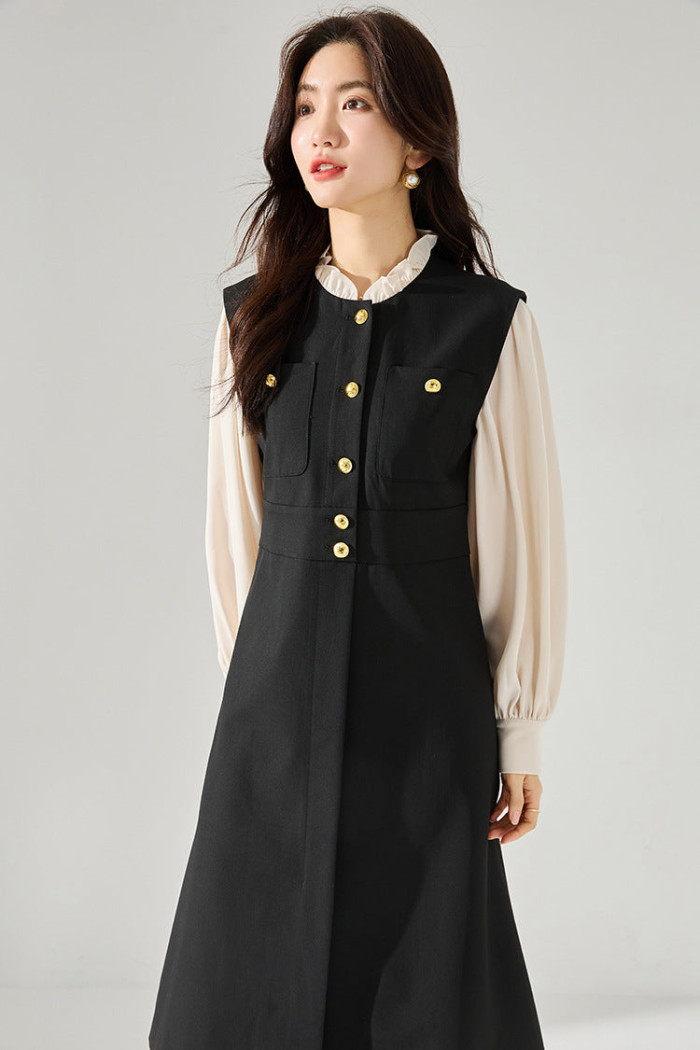 繊細なレースカラーが顔まわりを明るく見せ、ワンピース全体の上品さを引き立ててくれます。動きに合わせてふんわり揺れるスカートが女性らしい余韻を生み、特別感のある装いが叶います。華やかさと落ち着きがちょうどよく調和した、大人に寄り添う一枚です。