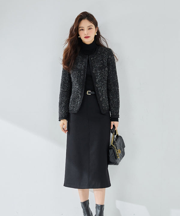 クラシックな雰囲気のツイードジャケットは、上品できちんと感のある一着。ブラックで統一したインナーやボトムスと合わせれば、シックにまとまりオケージョンスタイルにも最適です。シンプルながら存在感のある、大人のためのモノトーンコーデが完成します。