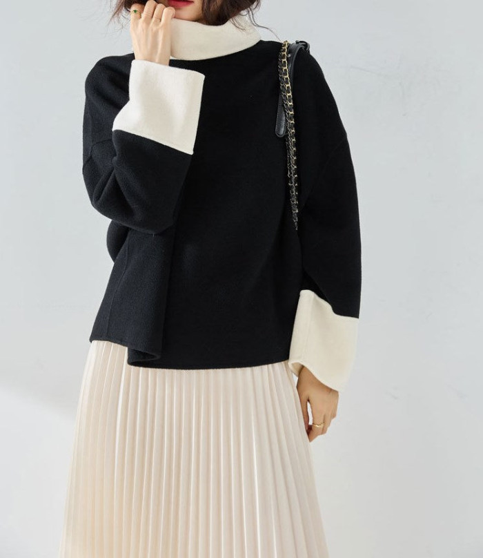 控えめなコントラストの配色が、ゆったりとしたシルエットに自然な立体感を添えるウールニット。締めつけ感がなく、体のラインを拾わずにすとんと落ちる着心地が魅力です。ラフさがありながらもきれいめに見えるデザインで、日常の装いに程よい洒落感をプラスします。