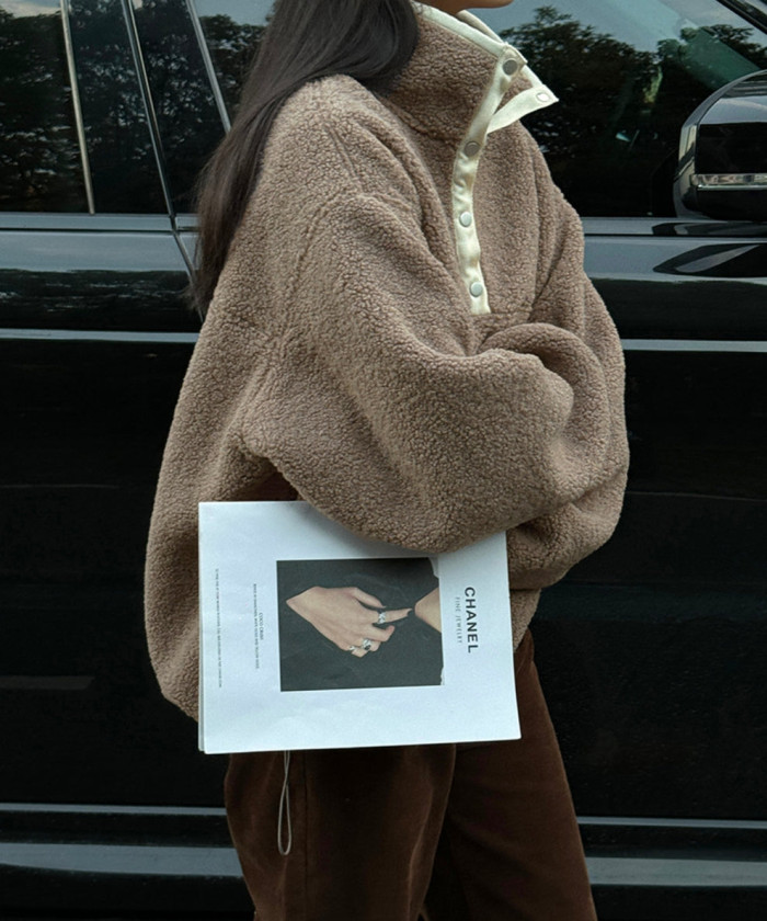 ゆるっとしたボアジャケットで、とことんカジュアルに。