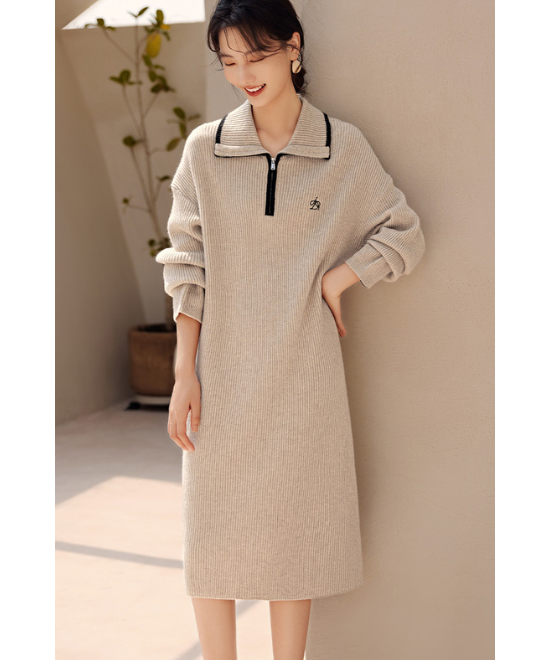 大人カジュアルなジップアップセーターワンピース