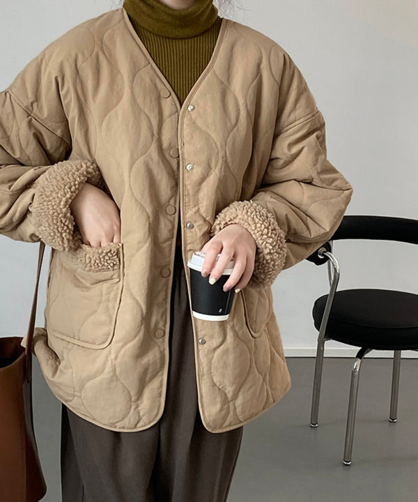 ノーカラーですっきり見えるキルティングジャケット