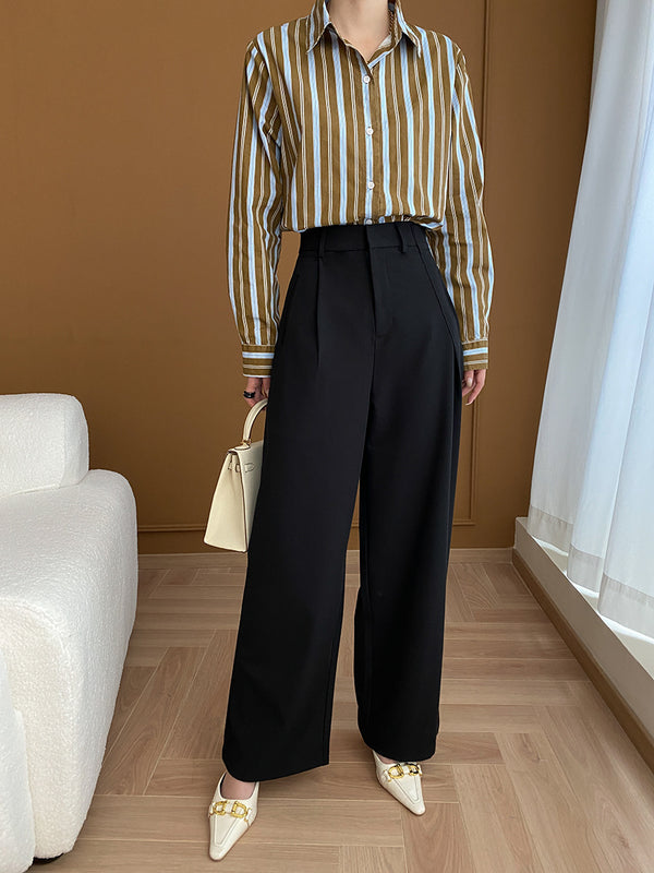 体型を隠しているつもりが余計ボリューミーに。そんな声も聞かれるワイドパンツですが、ワイドストレートを選べば失敗も少ない。こちらはドレープを効かせたスーツ生地で、素材でも体型を拾いにくくしてくれています。安定感のあるパンツだから個性派シャツを合わせても。