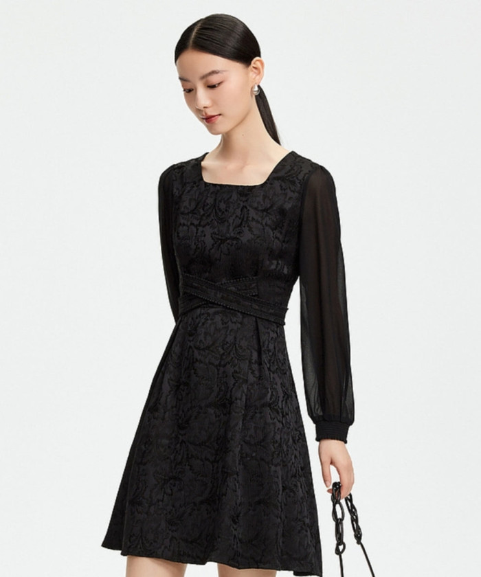 立体ジャガードが映えるAラインワンピース