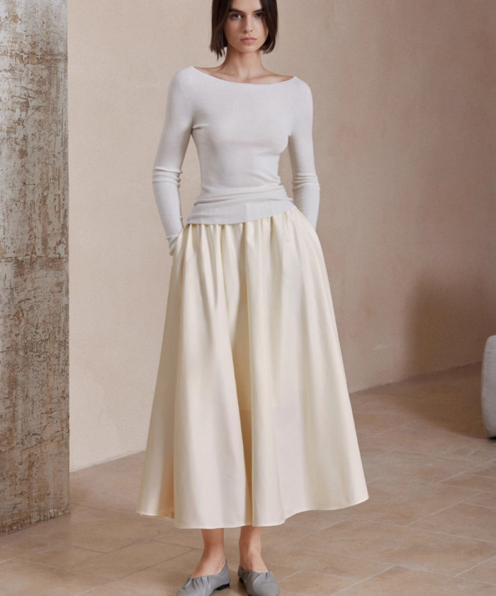 やさしい広がりが大人に馴染むシンプルプリーツ
