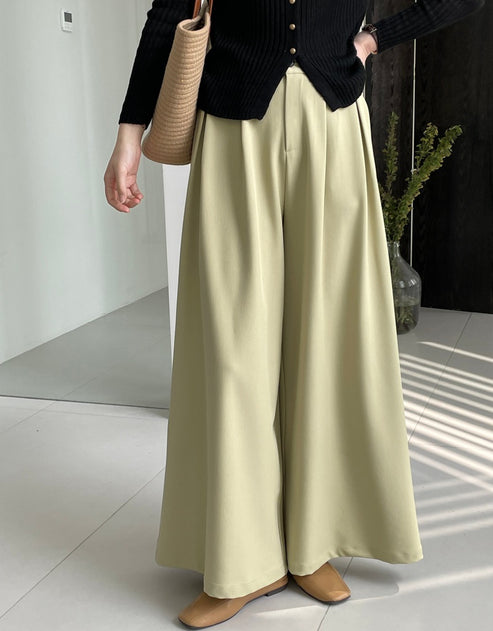 ピスタチオグリーンを差し色に!軽やかワイドパンツの都会的コーデ