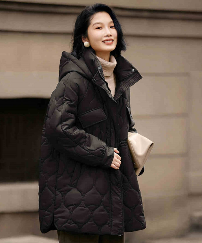 ボリューム感を抑えたミドル丈ダウンで軽やかに
