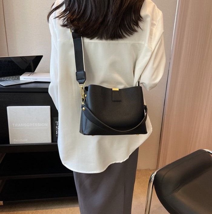シンプルなフォルムで万能に使えるバケットショルダーバッグ