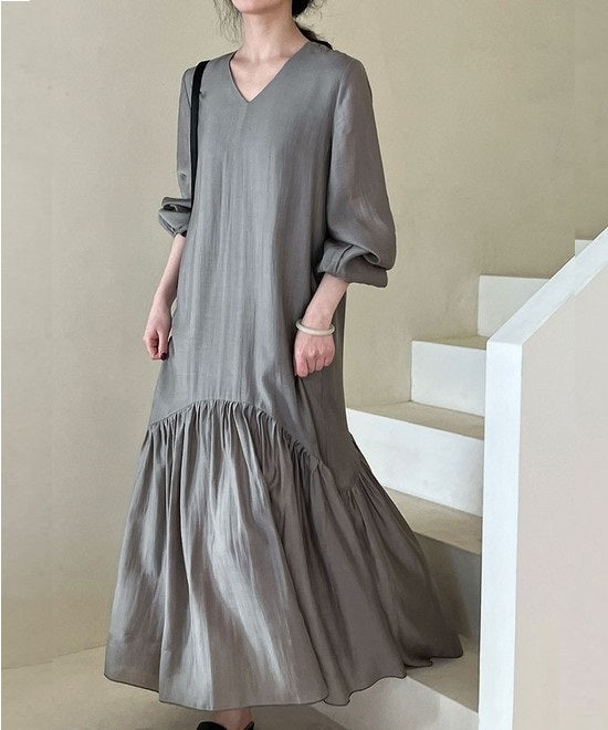 アースグレーの落ち着いたカラーは、デイリーからきれいめなお出かけまで幅広いシーンで着用可能。ママ友とのランチ会でも体型をさりげなくカバーしながら、今っぽさと上品さを両立します。