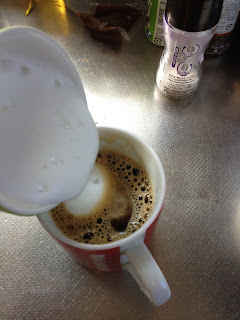 ③エスプレッソや深煎りコーヒーの上に、泡立った牛乳をゆっくりのせて完成!