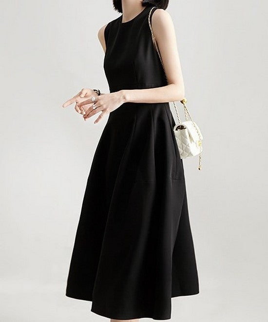 高めの位置で切り替えられたノースリーブワンピースは、綺麗な縦ラインがスタイルアップを叶えてくれます。裾に向かってふわりと広がるスカートが女性らしい一着です。シルバーのアクセサリーを合わせれば遊び心のあるコーデに。ゴールドなら華やかでパーティーシーンにもぴったりです。