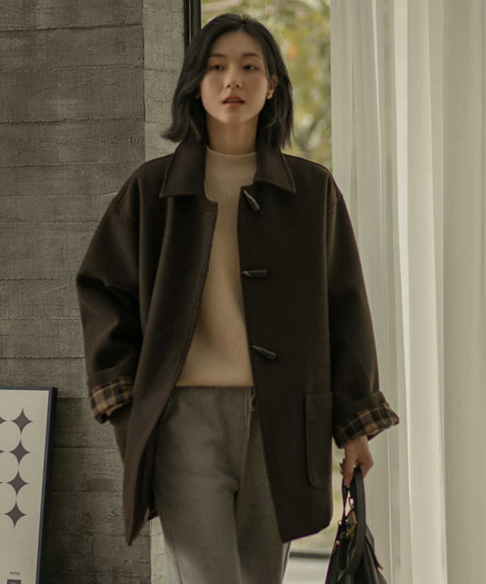 ウールの暖かみとトグルボタンのクラシカルな雰囲気が魅力のジャケット。重ね着してもふくらみにくいシルエットで、長時間の外出でも動きやすいのが嬉しいポイントです。デニムやワイドパンツと合わせれば、カジュアルながら品のある“きちんと見え”も叶います。冬の送り迎えコーデを優しく格上げしてくれるアウターです。