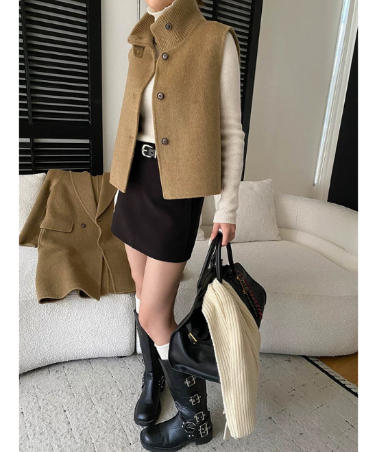 ケープのように肩を包むデザインが、軽やかなのに暖かいスタンドカラーコート。首元まで覆われる襟が冷気を遮り、外での作業や移動でも快適に過ごせます。きちんと感のある佇まいは、仕事シーンはもちろん、そのまま取引先へ向かう日にも安心して着られる洗練された印象です。