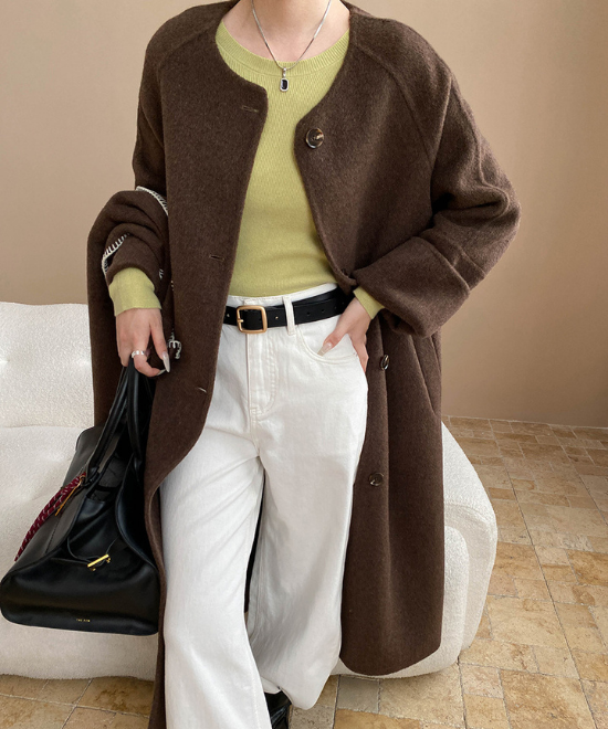 ロングコートと同素材のベストがセットになり、気温や予定に合わせて着方を変えられる頼もしさが魅力。ベストを重ねればしっかり暖かく、外では長時間の移動にも安心です。コートは無駄のないシルエットで、パンツにもスカートにも合わせやすく、きれいめな印象を損なわないのが大人に嬉しいポイント。