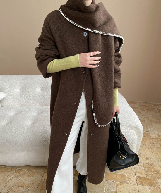 刺繍ストールで華やぐロングコート